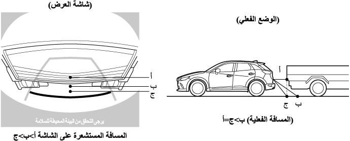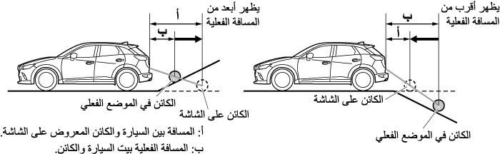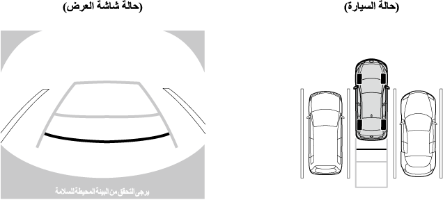 تختلف المسافة التي تظهر في الصورة المعروضة عن المسافة الفعلية نظرًا لأن كاميرا الانتظار الخلفية مزودة بعدسة من نوع خاص.
