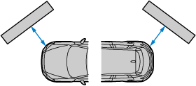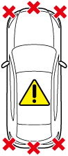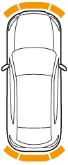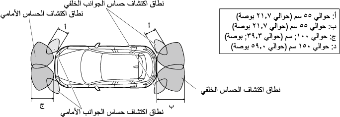 الحساس الخلفي: حوالي ٦٠ سم―٤٥ سم (٢٣٫٦―١٧٫٧ بوصة) حساس الجوانب الخلفي: حوالي 55-38 سم (21.7-15.0 بوصة) |