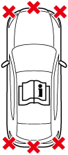 الحساس الخلفي: حوالي ٣٥ سم (١٣٫٧ بوصة) حساس الجوانب الخلفي: حوالي ٢٥ سم (٩٫٨ بوصة) |