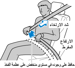 سوف تعرض حياتك للخطر، في حالة ربط جزء الحجر من حزام المقعد فوق مستوى الحجر بدرجة كبيرة. إذ أنه في حالة حدوث تصادم، يؤدي ذلك إلى تركيز قوة الصدمة على منطقة البطن مباشرة، مما يؤدي إلى حدوث إصابات بالغة. كما يرجى التأكد من ربط جزء الحجر من الحزام بإحكام في المنطقة السفلية للحجر كلما كان ذلك ممكنًا.