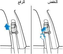 لا ينبغي إجراء أية تعديلات أو إضافات من قبل المستخدم قد تؤدي إلى منع استخدام أدوات ضبط حزام المقعد من العمل لإزالة الارتخاء، أو تمنع ضبط مجموعة حزام المقعد لإزالة الارتخاء.