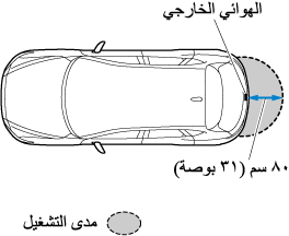 عندما تكون شحنة البطارية منخفضة أو في الأماكن التي توجد فيها موجات لاسلكية عالية الشدة أو ضوضاء، قد يصبح مدى التشغيل أضيق أو قد لا يعمل النظام. لتحديد الحاجة إلى استبدال البطارية، راجع نظام الدخول بدون مفاتيح (بحث).