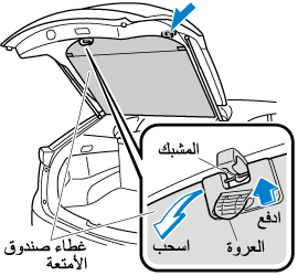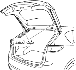توخى الحذر حتى لا تستخدم القوة المفرطة مع مثبت المخمد الموجود في باب صندوق الأمتعة مثال وضع يديك على المثبت. وإلا فقد يتعرض مثبت المخمد للالتواء ويؤثر على تشغيل باب صندوق الأمتعة.