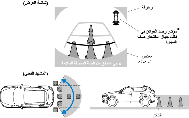 من الخطورة الرجوع بالسيارة للخلف من خلال الاكتفاء بالنظر إلى الشاشة حيث قد يؤدي هذا إلى وقوع حوادث أو اصطدام بأحد الأشياء. الشاشة الخلفية عبارة عن جهاز مساعدة يمكن رؤيته عند عكس السيارة. وقد تختلف الصورة المعروضة على الشاشة عما هي عليه في الواقع.