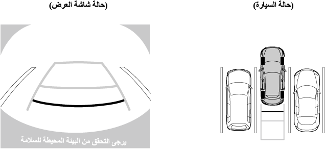 لا تستخدم شاشة الرؤية الخلفية في الأحوال التالية: استخدام شاشة الرؤية الخلفية في الأحوال التالية خطير وقد يؤدي إلى حدوث إصابات أو تلف السيارة أو كلاهما.