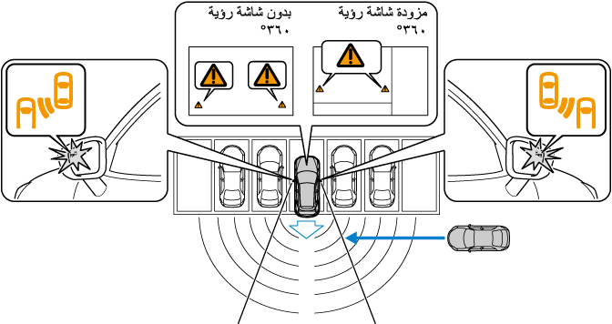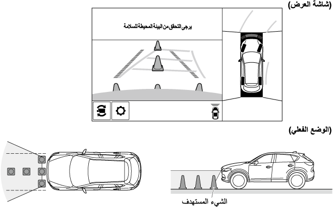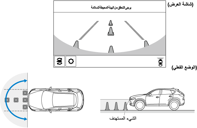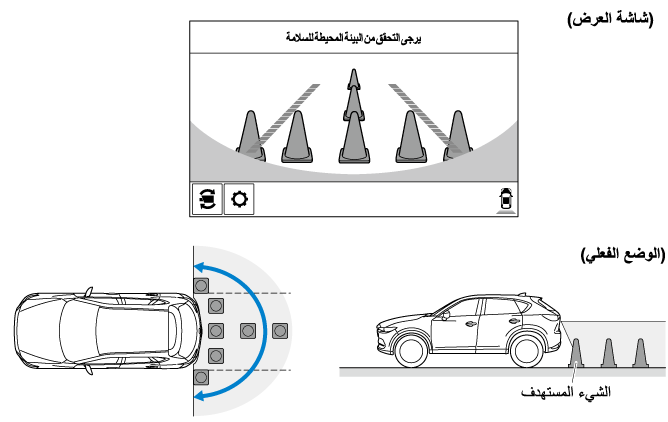 تم تشغيل نظام دعم الفرامل الذكي داخل المدينة [الأمامي] (SCBS F) أو نظام دعم الفرامل الذكي المتطور داخل المدينة (Advanced SCBS).
