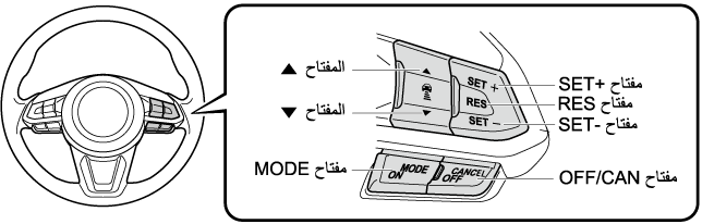تبدأ وظيفة التحكم في المسافة مع السيارة الأمامية عندما يتم الضغط على المفتاح SET