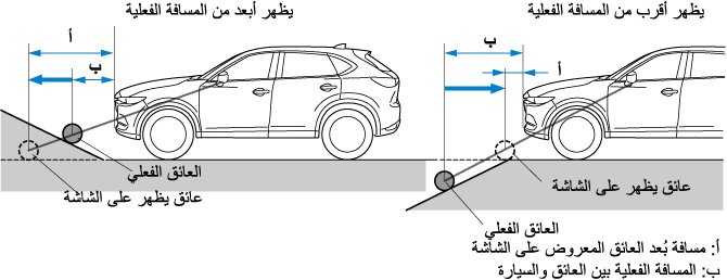 لا يمكن التحكم في المسافة مع السيارة الأمامية إذا كانت السيارة أمامك تسير بسرعة أعلى من السرعة المضبوطة لسيارتك. قم بضبط النظام على السرعة المرادة للسيارة باستخدام دواسة الوقود.