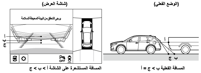 إذا تم تحويل مفتاح بدء التشغيل إلى وضع الإيقاف، أثناء تشغيل نظام تثبيت السرعة بتقنية الرادار من مازدا مع وظيفة التوقف والسير، فسيكون النظام في وضع التشغيل في المرة التالية التي يتم فيها تحويل مفتاح بدء التشغيل إلى وضع التشغيل ON.