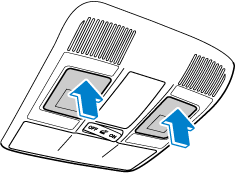 عندما يكون مفتاح تشغيل مصباح السقف الأمامي في وضع الباب أو وضع الإيقاف، قم بالضغط على العدسة لإضاءة مصابيح القراءة الأمامية، ثم قم بالضغط على العدسة مرة أخرى لإطفاءها.