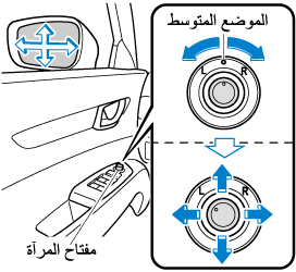 لإعادة المرآة إلى موضع القيادة قم بتدوير المفتاح إلى الموضع الأوسط.