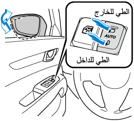 إذا لم تُطوى المرايا الخارجية للداخل والخارج تلقائياً، قم بإزالة أي جليد أو ثلوج ثم اضغط الجانب العلوي أو السفلي من مفتاح الطي التلقائي للمرآة الخارجية لكي يتم طي المرايا الخارجية للداخل أو الخارج.