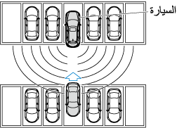 منطقة الرصد التي يغطيها جهاز استشعار الرادار (الخلفي) تم إعاقتها بواسطة جدار جانبي أو سيارة مصفوفة. (قم بإرجاع السيارة إلى الخلف إلى موضع حيث لم يعد هناك ما يعوق منطقة الرصد التي يغطيها جهاز استشعار الرادار.)