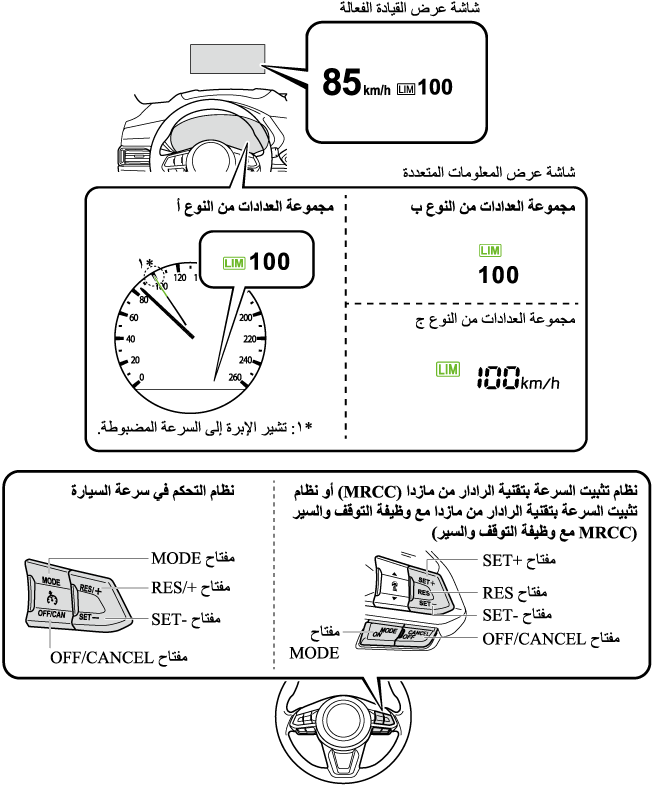 في الحالات التالية، يضيء ضوء مؤشر إيقاف نظام مراقبة البقعة العمياء (BSM OFF) ويتوقف تشغيل النظام. في حالة استمرار إضاءة ضوء مؤشر إيقاف نظام مراقبة البقعة العمياء BSM) OFF)، افحص سيارتك لدى فني إصلاح متخصص (نوصي بالاستعانة بفني إصلاح معتمد من قبل شركة مازدا) بأسرع وقت ممكن.