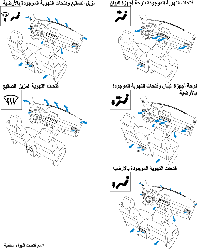 يسمح للهواء الخارجي بالدخول داخل السيارة. استخدم هذا الوضع للتهوية أو إزالة الجليد عن الزجاج الأمامي.