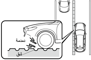 منطقة الرصد التي يغطيها جهاز استشعار الرادار (الخلفي) تم إعاقتها بواسطة جدار جانبي أو سيارة مصفوفة. (قم بإرجاع السيارة إلى الخلف إلى موضع حيث لم يعد هناك ما يعوق منطقة الرصد التي يغطيها جهاز استشعار الرادار.)