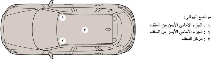 يجب إبعاد أسلاك الهوائي وأسلاك الطاقة بمسافة ١٠٠ مم (٣٫٩ بوصة) على الأقل عن أي وحدات إلكترونية وأكياس هوائية.
