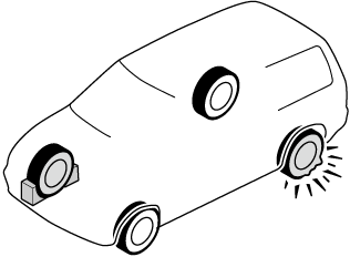 من الخطر القيادة باستخدام إطار احتياطي مؤقت في العجلات الأمامية. ستتأثر القدرة على التحكم في السيارة. قد تفقد السيطرة علي السيارة، خاصة على الطرق المغطاة بالثلج أو الجليد، مما قد يؤدي إلى وقوع حادث. قم بنقل إطار عادي إلى العجلة الأمامية وثبت الإطار الاحتياطي في الخلف.