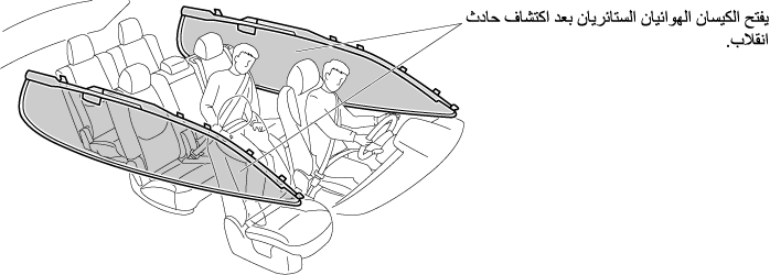 الأكياس الهوائية الجانبية يتم تثبيتها في الجوانب الخارجية لظهور المقاعد الأمامية.