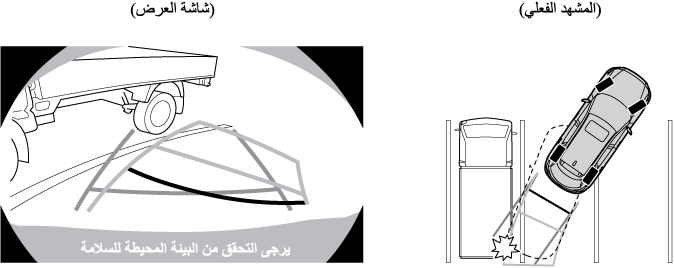 لا تستخدم شاشة الرؤية الخلفية في الأحوال التالية: استخدام شاشة الرؤية الخلفية في الأحوال التالية خطير وقد يؤدي إلى حدوث إصابات أو تلف السيارة أو كلاهما.