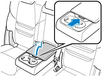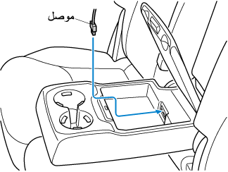 يمكن استخدام التجويف الموجود في صندوق مسند الذراع لتمرير سلك الجهاز إلى الصندوق كي يتم توصيله إلى منافذ طاقة USB.