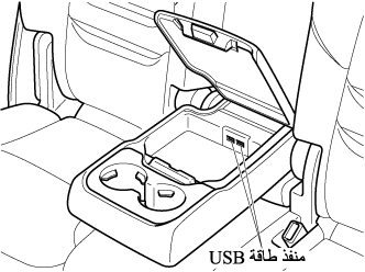 لمنع تفريغ شحنة البطارية، لا تستخدم منافذ طاقة USB لفترات طويلة عندما يكون المحرك متوقفا عن العمل أو يعمل أثناء توقف السيارة.