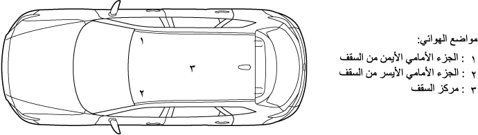 يجب إبعاد أسلاك الهوائي وأسلاك الطاقة بمسافة ١٠٠ مم (٣٫٩ بوصة) على الأقل عن أي وحدات إلكترونية وأكياس هوائية.