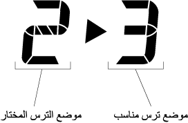 يوصى بالتبديل إلى وضع الترس الأعلى أو الأدنى المذكور.