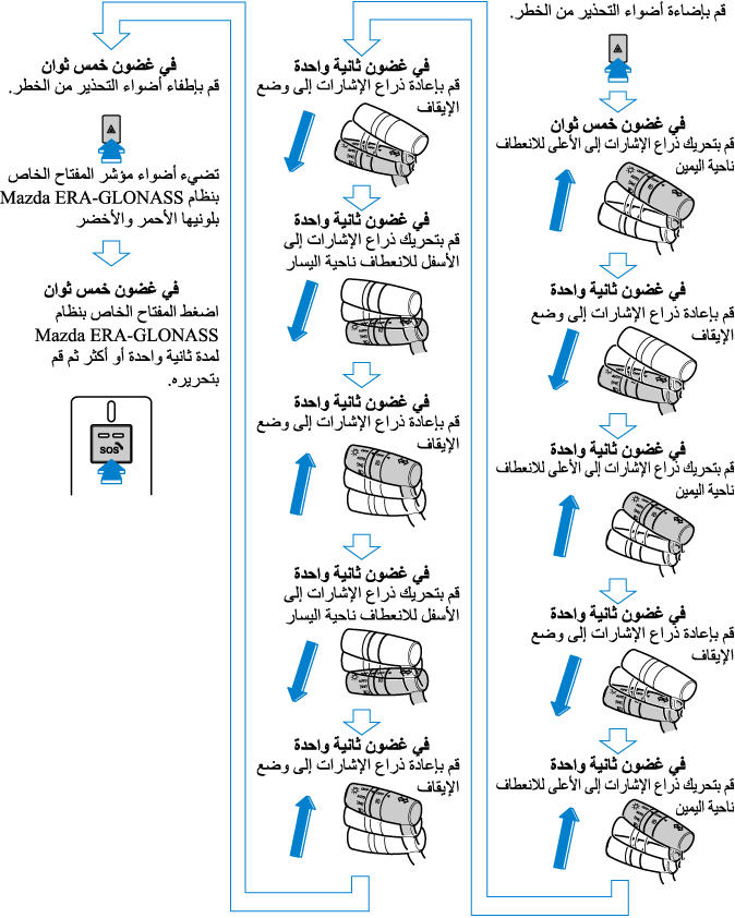 يمكن استخدام نظام Mazda ERA-GLONASS عندما يكون مفتاح بدء التشغيل في وضع التشغيل ON.
