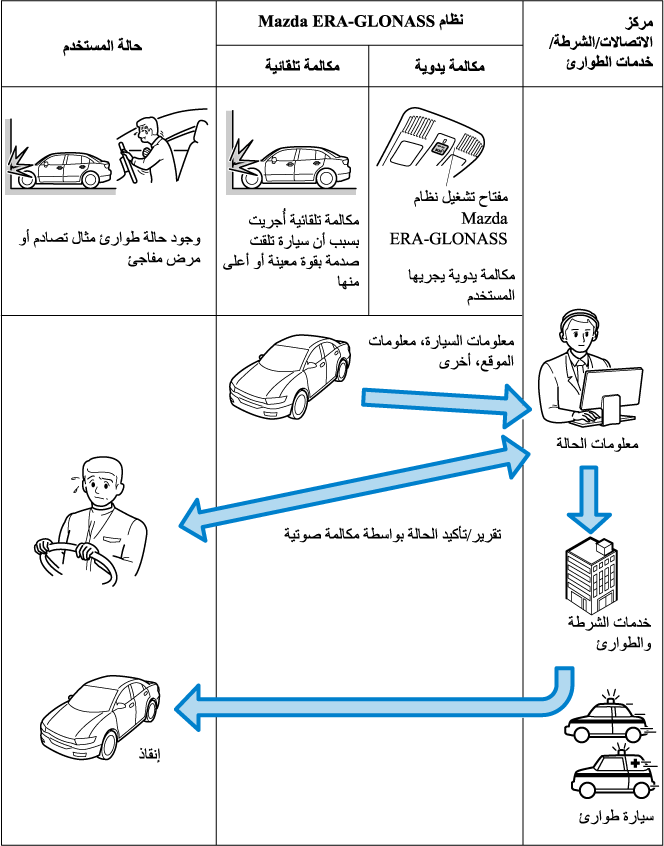 تتأكد وظيفة وضع الاختبار من أن نظام Mazda ERA-GLONASS يعمل بطريقة طبيعية.
