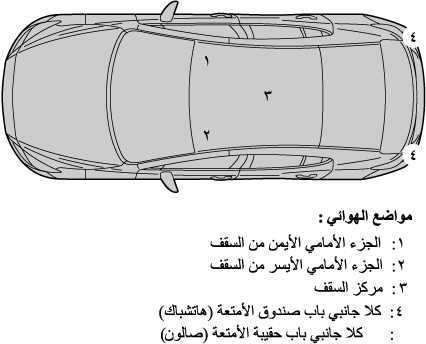 لا تقم بتثبيت أي أجهزة استقبال أو ميكرفونات أو سماعات أو أي أجهزة أخرى في مسار نشر نظام الأكياس الهوائية.