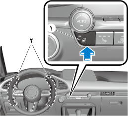 يمكن تشغيل مدفئات مقعد السائق والراكب الأمامي في الوضع التلقائي باستخدام الإجراء التالي.