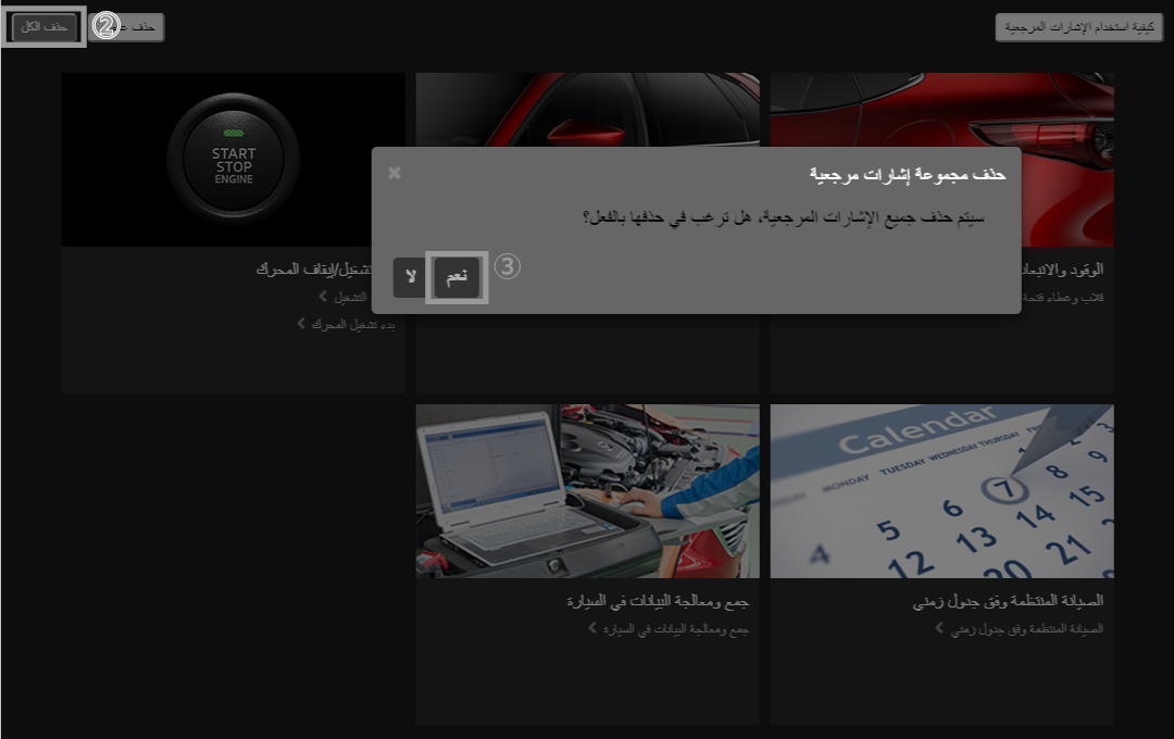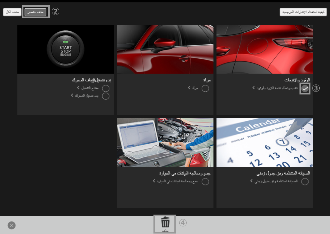 | البحث حسب الموضوع | يمكنك البحث عن المعلومات المطلوبة من خلال اختيار سيناريو قيادة السيارة. |