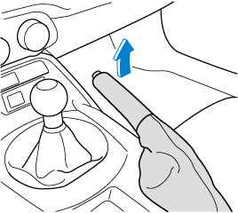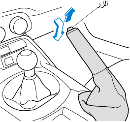 اضغط على دواسة الفرامل واسحب ذراع فرامل الانتظار لأعلى ثم اضغط على زر التحرير. أثناء الاستمرار في الضغط على الزر اخفض ذراع فرامل الانتظار لأسفل حتى آخره إلى وضع التحرير.