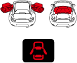 في حالة إضاءة أي من أضواء التحذير التالية، فقد يشير هذا إلى وجود عطل في النظام. أوقف السيارة في مكان آمن فوراً واتصل بفني صيانة معتمد من شركة مازدا.