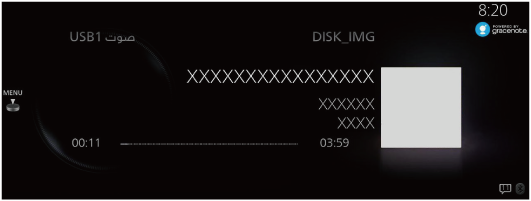 عند توصيل جهاز صوت USB بهذه الوحدة وتشغيل الصوت، تقوم الوحدة بالبحث عن صورة الألبوم في قاعدة البيانات المخزنة في السيارة. إذا وُجد تطابق في مجموعة قاعدة بيانات السيارة مع الموسيقى التي يتم تشغيلها، فسيتم عرض صورة الألبوم. معلومات قاعدة البيانات المخزنة في هذا الجهاز تستخدم معلومات قاعدة البيانات الواردة في خدمة Gracenote® للتعرف على الموسيقى.