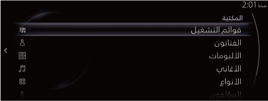 يتم عرض شاشة المكتبة. يمكنك اختيار الفئة التي تريد تشغيلها مثل الألبوم أو الفنان. للمزيد من التفاصيل، راجع اختيار مقطوعات من المكتبة. |
