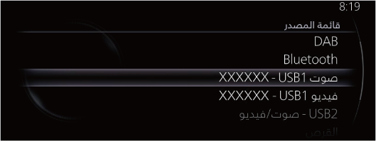 يتم عرض شاشة قائمة المصدر. يمكنك تبديل مصدر الصوت. |