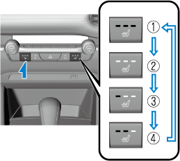 The set temperature changes as shown in the figure each time the seat warmer switch is pressed.