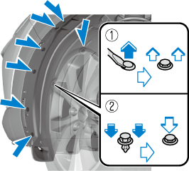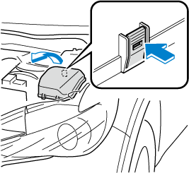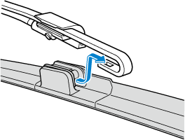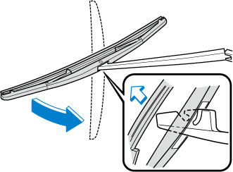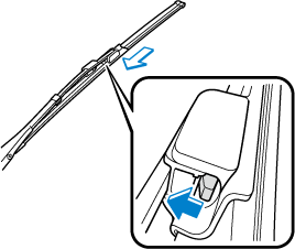 Slide the blade component in the direction of the arrow while pressing the wiper arm tab to remove the blade component from the wiper arm.