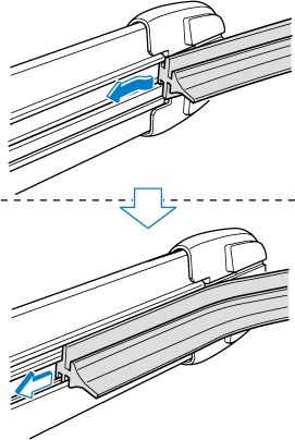 Do not bend the blade rubber unnecessarily when replacing it. Otherwise, the metal stiffener in the blade may deform and the windscreen wiper operation may be adversely affected.