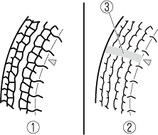 Pull the blade rubber in the direction of the arrow and slide it to a position where the blade holder groove can be checked.