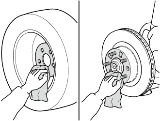 Use the jack lever when removing the centre cap. Using your hands to remove it may cause an injury. In addition, using a tool other than the jack lever may cause damage to the wheel or the centre cap.