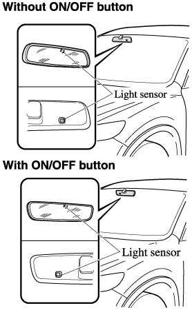 The auto-dimming function is cancelled when the ignition is switched ON and the shift/selector lever is in the R position.
