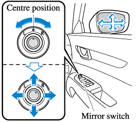 Before driving, adjust the rearview mirror to centre on the scene through the rear window.