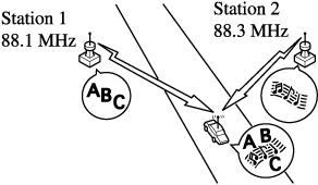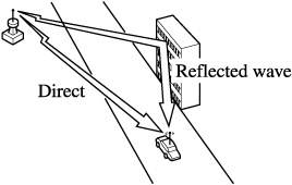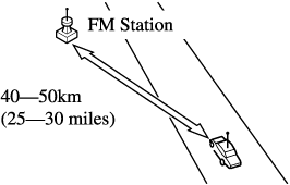 Signals from an FM transmitter move in straight lines and become weak in valleys between tall buildings, mountains, and other obstacles. When a vehicle passes through such an area, the reception conditions may change suddenly, resulting in annoying noise.