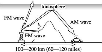 AM signals bend around such things as buildings or mountains and bounce off the ionosphere.