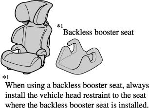 Remove the head restraint. However, when installing a backless booster seat, always install the vehicle head restraint to the seat where the backless booster seat is installed.