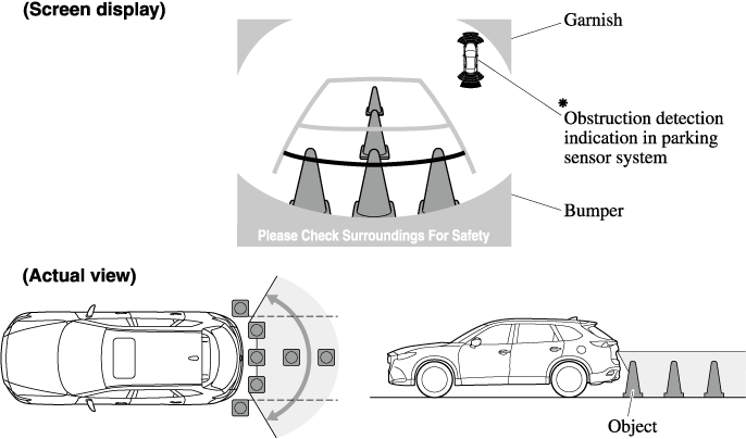 • The displayable range is limited. Objects under the bumper or around the bumper ends cannot be displayed.