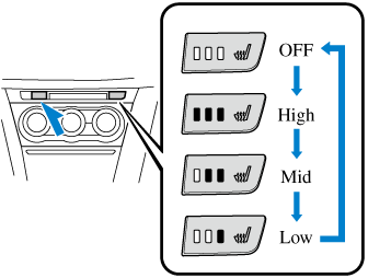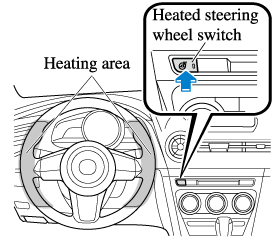 Press the switch to turn on the heated steering wheel. The heated steering wheel operates for about 30 minutes and then turns off automatically.